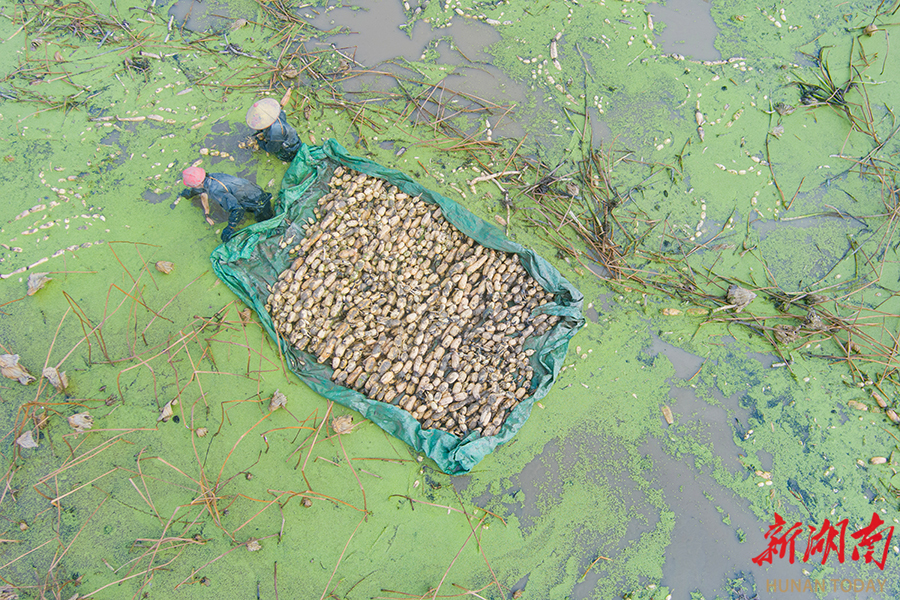 10月22日,南县乌嘴乡又东村,村民在采收莲藕。时下,该村莲藕迎来丰收季,村民适时采挖新鲜莲藕,及时供应市场,确保丰产丰收。近年来,该县依托水土资源优势,因地制宜发展“藕+虾”“藕+鱼”等生态种养模式,既壮大了村集体经济,又带动了村民就业增收。肖乐峰 摄(湖南图片库)