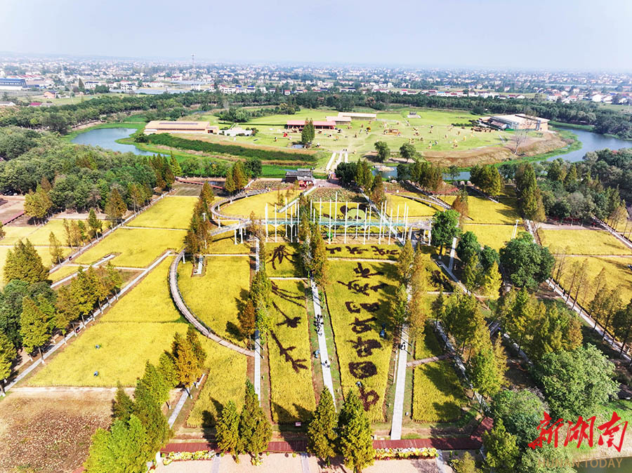 10月23日,澧县城头山旅游景区,游客在遗址区内的金色稻田区漫步。作为中国最早的城市遗址,景区秋日农耕景观与古老文明交相辉映,为游客提供独特的文化体验。 柏依朴 摄(湖南图片库)