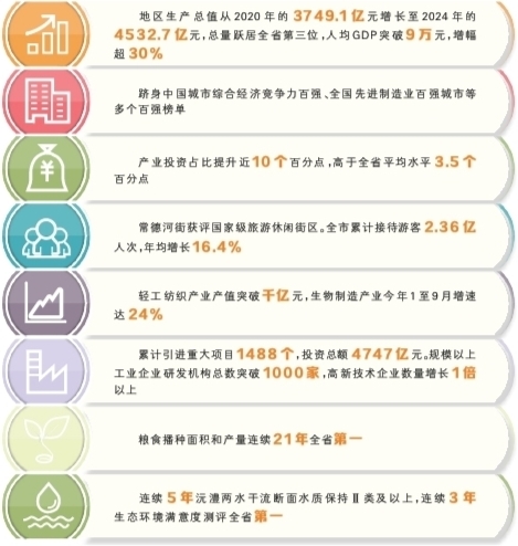 常德狠抓传统产业提升和新兴产业培育,构建“4+3”产业体系,形成多点支撑的产业格局。轻工纺织产业产值突破千亿元,“新饭碗”生物制造产业势头强劲,今年1至9月增速达24%。招商引资成果丰硕,累计引进重大项目1488个,投资总额4747亿元。全市经营主体和“四上”企业数量大幅增加,分别是2020年的1.5倍和1.6倍。科技创新成果显著,规模以上工业企业研发机构总数突破1000家,高新技术企业数量增长1倍以上。