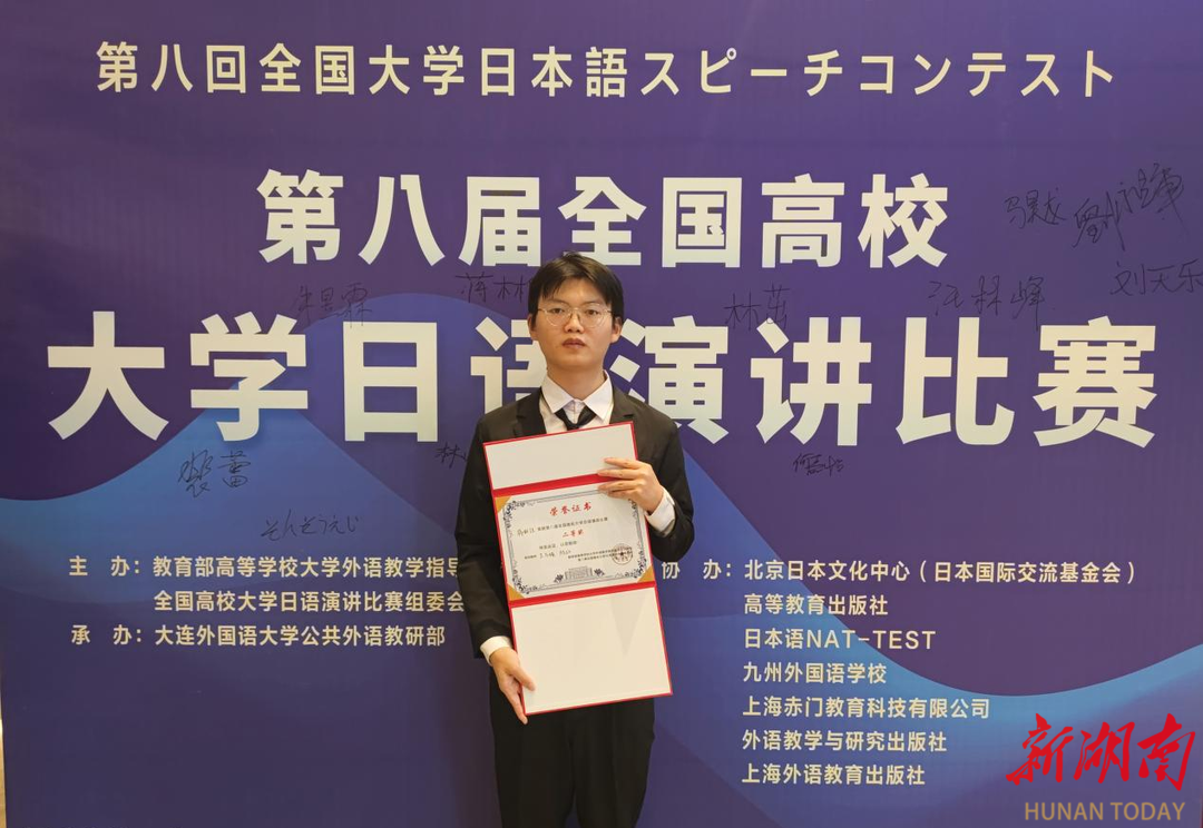 湖南日报·新湖南客户端10月24日讯(通讯员 陈红)近日,第八届全国高校大学日语演讲比赛落幕。湖南工程学院机械工程学院2024级学生蒋林佳凭借出色发挥,从35名决赛选手中脱颖而出,荣获二等奖。