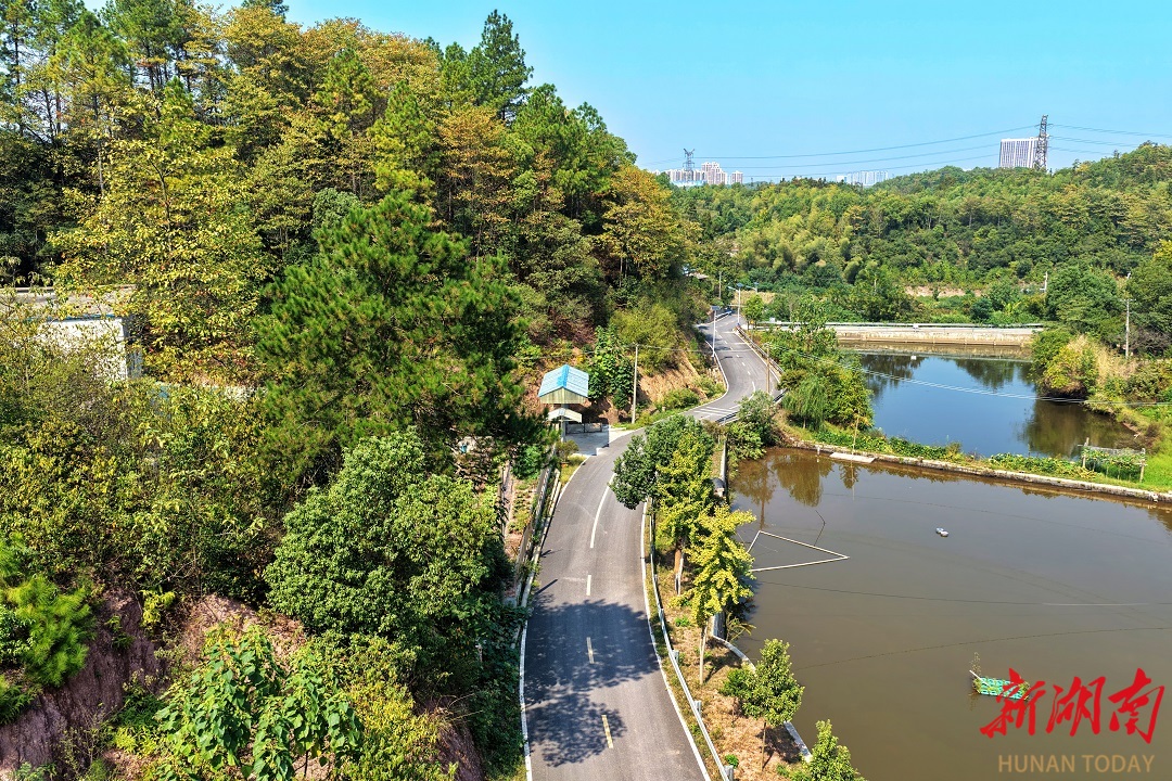 管得好,更要扮得美。岳塘区将“美丽”理念融入道路建设,着力打造“一路一景”的生态廊道。省级“最美农村公路”昭黄线,路面宽6米,采用沥青混凝土铺筑,两侧设有自行车道与游步道,以绿化带分隔,全线配备路灯,并建有廊亭、景观桥等休闲设施,是“绿心”地区的一颗璀璨明珠。道路两旁香樟与紫薇错落有致,春日花开满径,秋来绿树成荫,与周边稻田、荷塘相映成趣,享有“人在车上坐,车在画中游”的美誉。