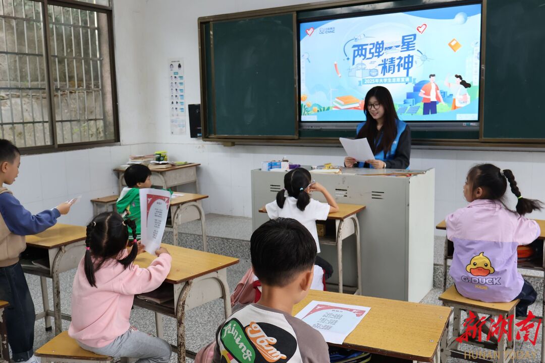 湖南日报·新湖南客户端10月24日讯(通讯员 张倩 宁伊薪)近日,湖南财经工业职业技术学院“星火衡阳”红色故事宣讲团怀揣炽热初心与特殊使命,走进狮子山小学,为孩子们带来一场从“两弹一星”到“碳中和”的精神接力,在稚嫩心田悄然播下科技报国、守护家园的种子。
