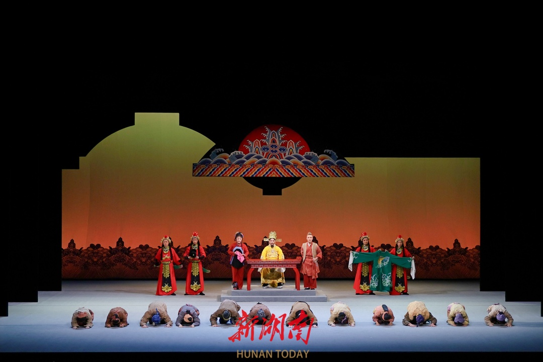 其舞美设计以简约写意为基调,极富湖湘特色。用极具巧思的艺术构思实现“以简驭繁”的效果,节约成本的同时彰显了传统戏曲写意美学的魅力,还为表演留出丰富空间。