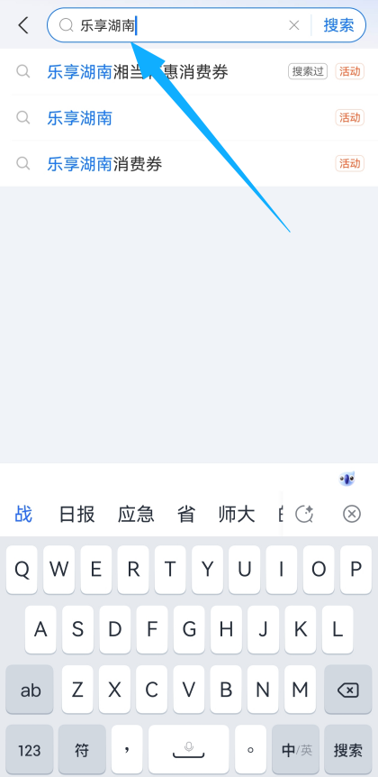 第一步:登录支付宝APP,在首页搜索关键词“乐享湖南”。