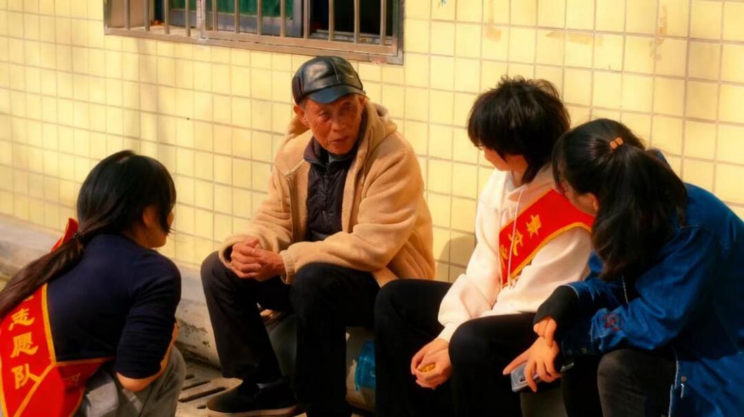活动伊始,志愿队的学生们带来了舞蹈、诗歌朗诵等节目,赢得老人们的阵阵掌声;随后向老人送上手写对联,红纸黑字里裹满节日祝福。节目结束后,学生们分组陪老人在院内散步,坐在墙根下听老人讲过去的故事,敬老院里暖意融融。