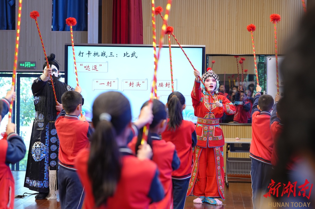 活动伊始,株洲市南方第三小学学生演绎的花鼓戏校园剧《梦・翔》精彩开场,小演员们灵动的身段、稚嫩却专业的唱腔赢得全场掌声,尽显戏曲艺术在青少年群体中的鲜活活力。