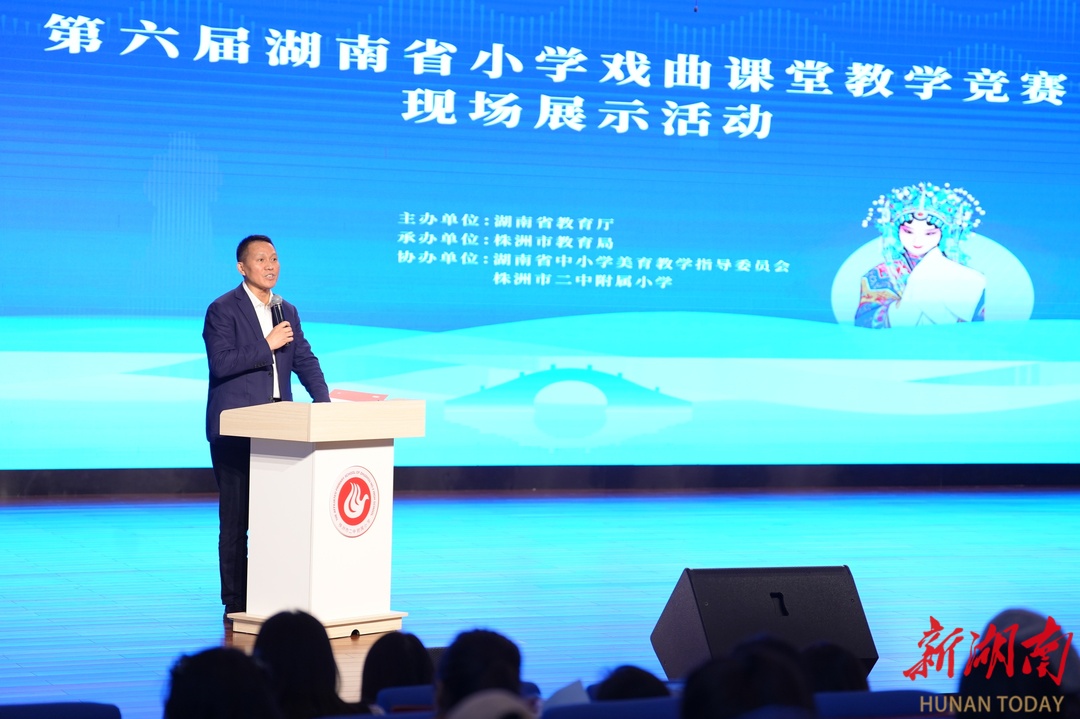 10月24日至25日,第六届湖南省小学戏曲课堂教学竞赛现场展示活动在株洲市二中附属小学举行。全省教育专家、教研员及一线教师齐聚,通过开幕式展演、优质课展示、经验交流与专家点评,共同打造了一场兼具专业性与趣味性的戏曲美育盛宴,为推进戏曲文化传承、落实学校美育浸润计划注入强劲动力。