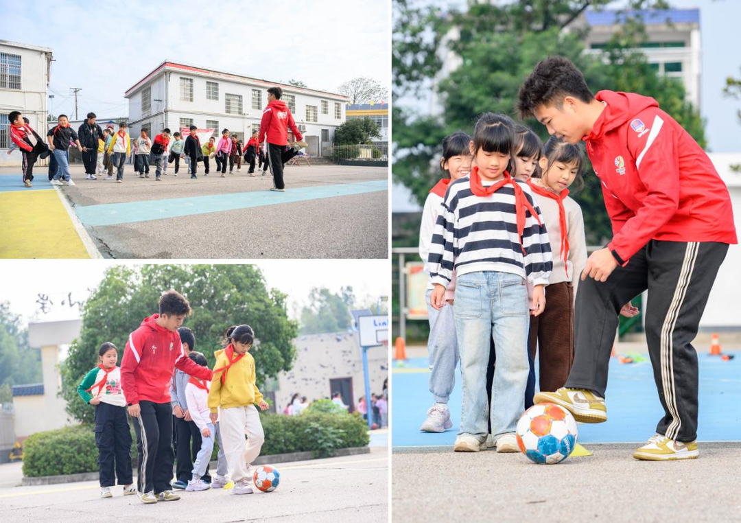 活动现场,来自2025湖南省足球联赛(简称“湘超联赛”)的球员长沙队7号刘沛林和衡阳队11号刘浩翰也加入了本次援教队伍,并以其专业素养为乡村孩子们的体育课堂注入了别样的激情与梦想,传递拼搏精神。