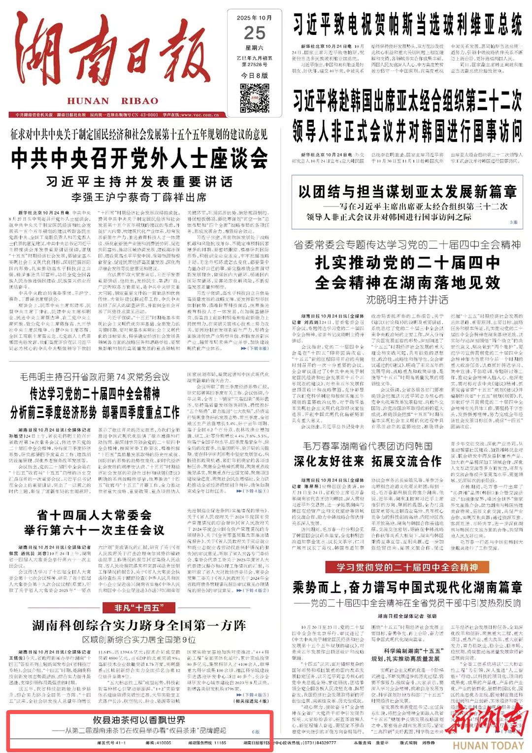 《湖南日报》头版导读