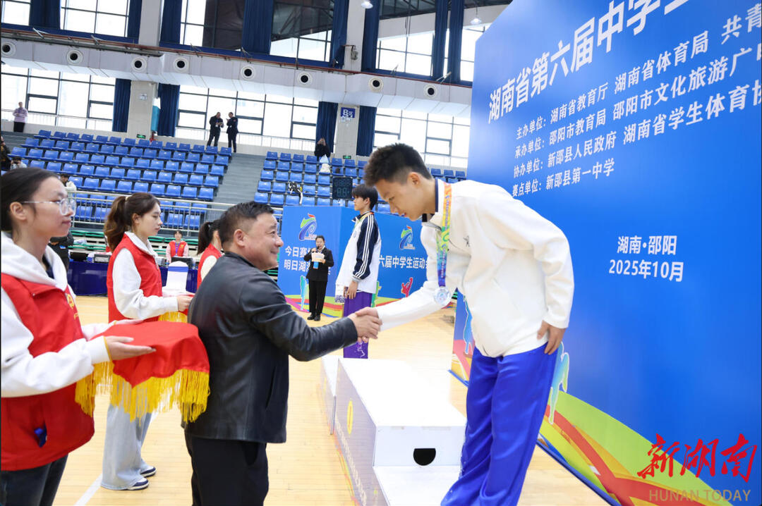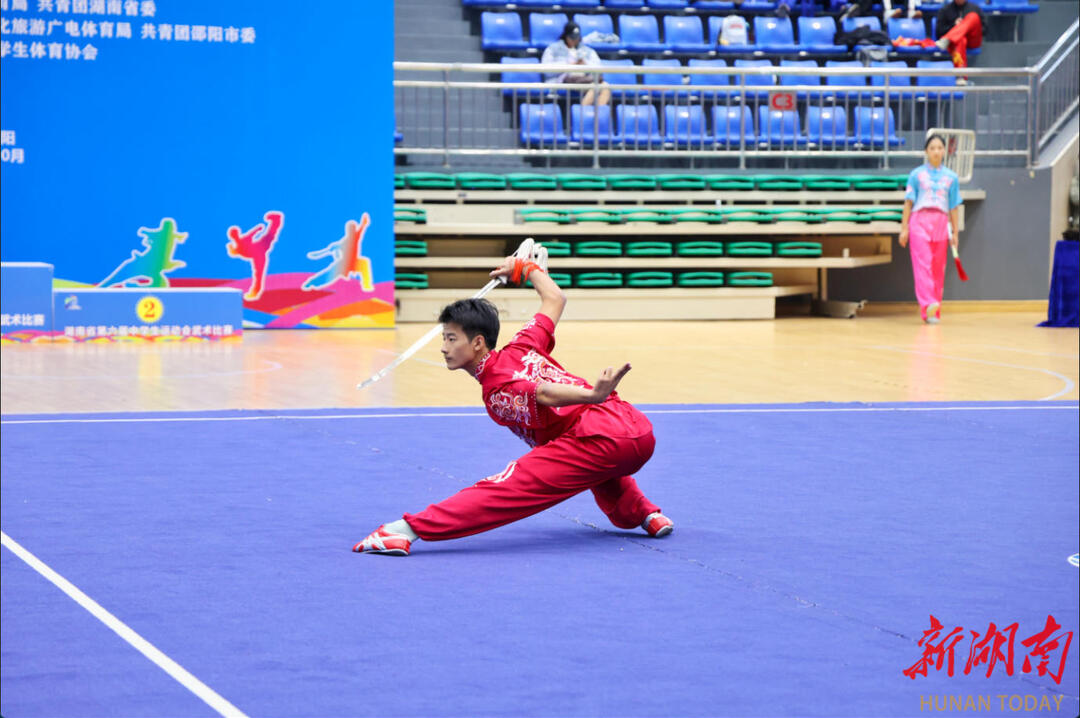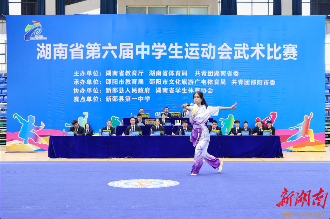 湖南日报·新湖南客户端10月25日讯(记者 戴鹏 通讯员 孙咏梅 张海兵 肖晔)“拳”力以赴,谁与争锋!10月23日至24日,湖南省第六届中学生运动会武术比赛在新邵一中体育馆热血开赛。来自全省11支代表队的77名运动员齐聚赛场,以拳为媒、以武会友,在一招一式间挥洒青春热血,共同诠释中华武术的博大精深与独特魅力。最终,长沙市代表队以10金3银2铜位居总分榜首。