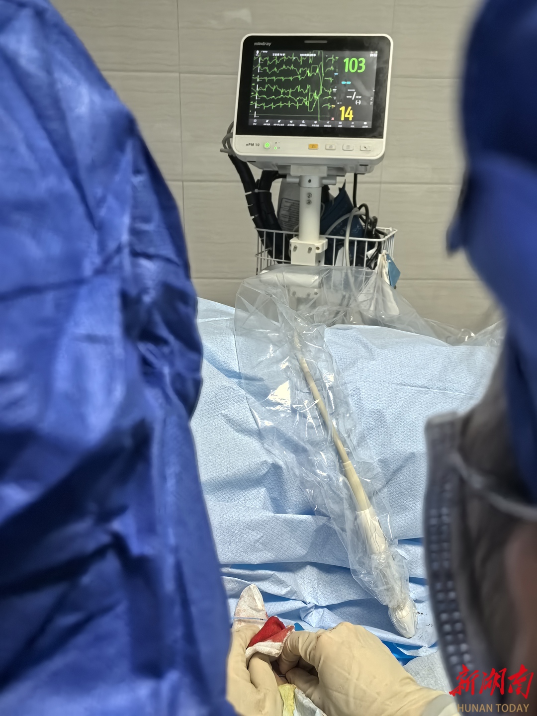 湖南日报·新湖南客户端10月25日讯(通讯员 欧娜 冯霞)近日,南华大学附属南华医院肿瘤一区在静脉治疗领域实现重大技术突破,成功为一位罹患肺癌并伴发上腔静脉压迫综合征的危重患者,实施了全院首例“经下腔静脉穿刺置入PICC导管术”(经外周置入的中心静脉导管)。此次手术结合心电定位技术,实现了导管尖端位置的精准定位,为因上腔静脉通路受阻而陷入“输液难”困境的患者,开辟了一条全新的、安全有效的“生命线”。