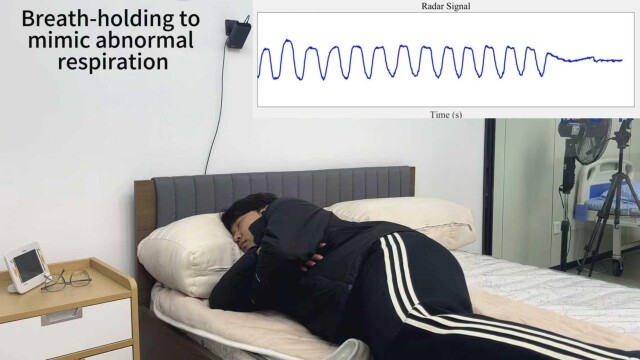尤为关键的是,团队通过迁移学习技术,成功将模型适配于毫米波雷达信号,首次实现了“睡着即测得”的无感监测。患者只需在卧室放置一枚迷你雷达,设备便能透过被子实时捕捉胸腹呼吸微动,精准解析睡眠结构,全过程无需穿戴任何传感器。