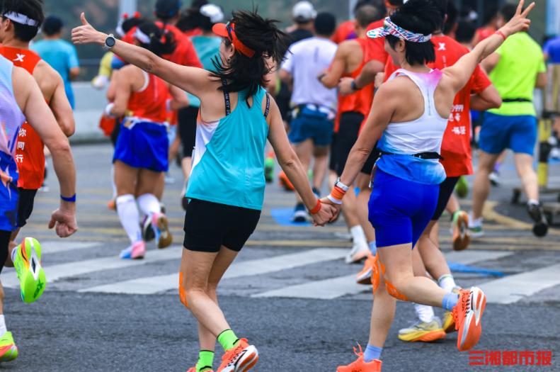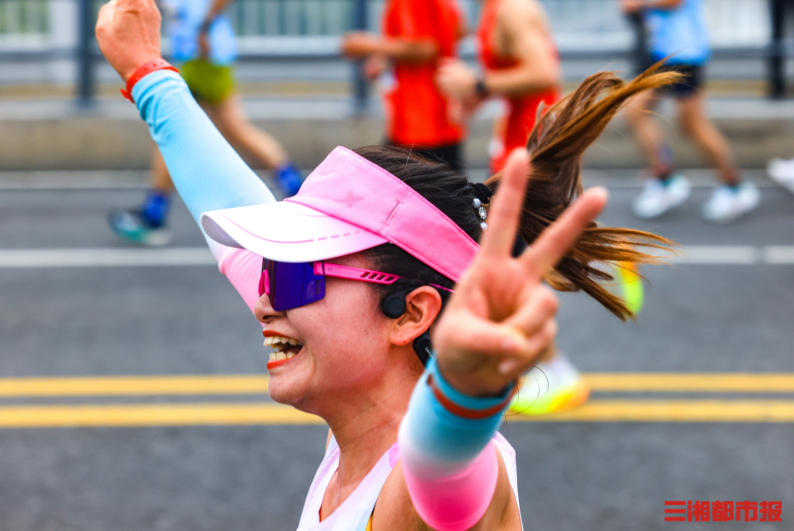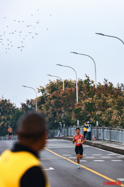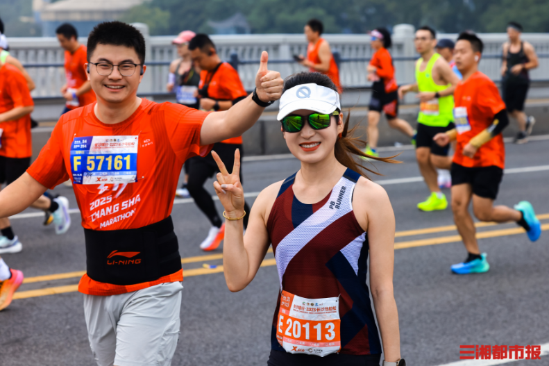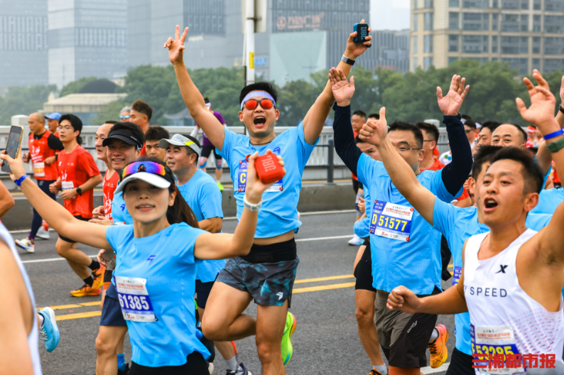10月26日,早7时2025长沙马拉松在杜甫江阁鸣枪开跑。 赛事起点设于湘江中路杜甫江阁旁,设马拉松、半程马拉松、欢乐跑三大项目,终点分别位于贺龙体育场南广场、渔人码头及开福寺广场。(刘丰 摄)