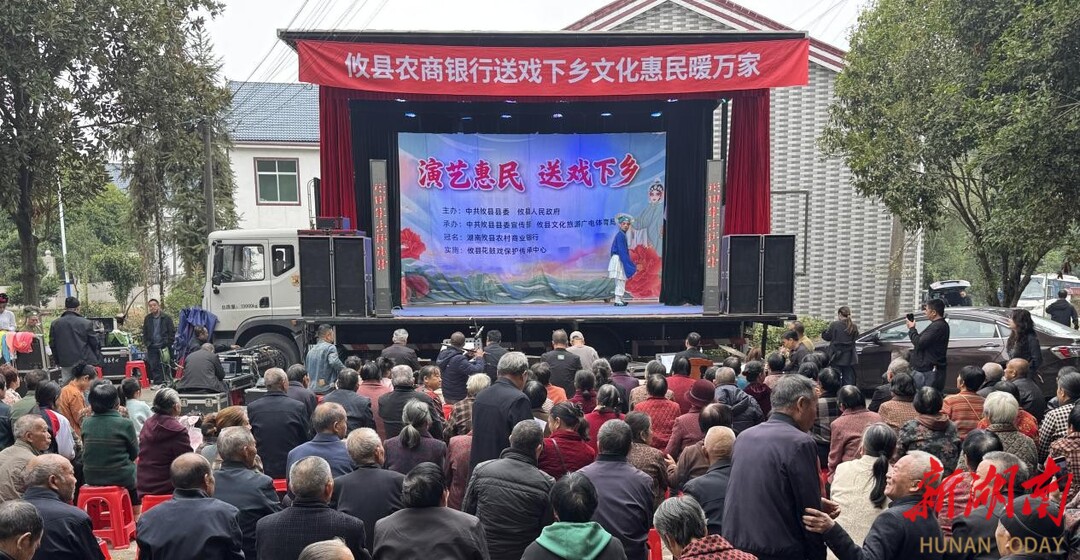 近午时分,村部广场早已挤满人,锣鼓声一敲,热闹便漫了全村。为贺重阳,村里请来攸县花鼓戏剧团,《福寿图》的唱腔一起,便勾住了老人们的心。戏台上,演员们水袖轻扬,将忠孝故事演得活灵活现;戏台下,老人们坐在前排,眯着眼跟着打节拍,脸上的笑像孩童般纯粹。七十八岁的李大爷抹了抹眼角:“好些年没听这么地道的花鼓戏了,今天比过年还高兴!”