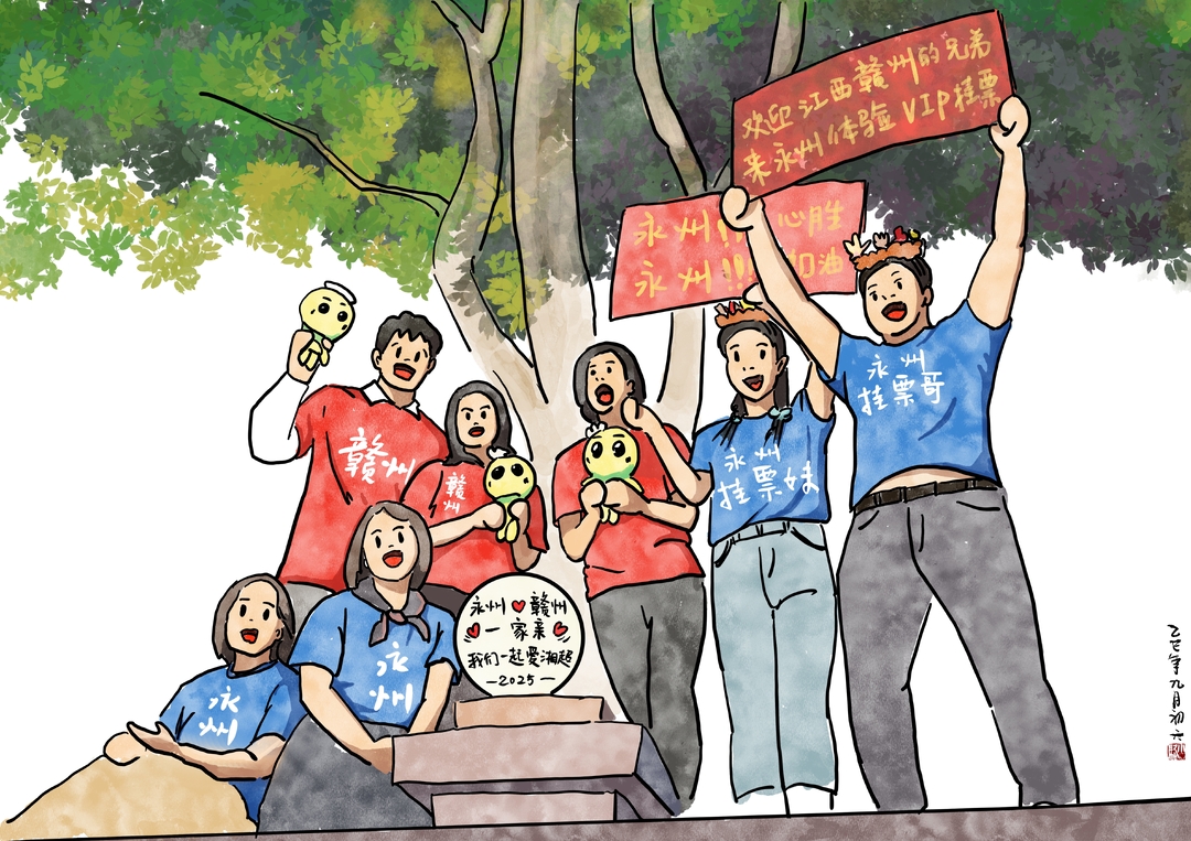 赣州球迷体验湘超永州赛区VIP“挂票”。作者:骆龙磊