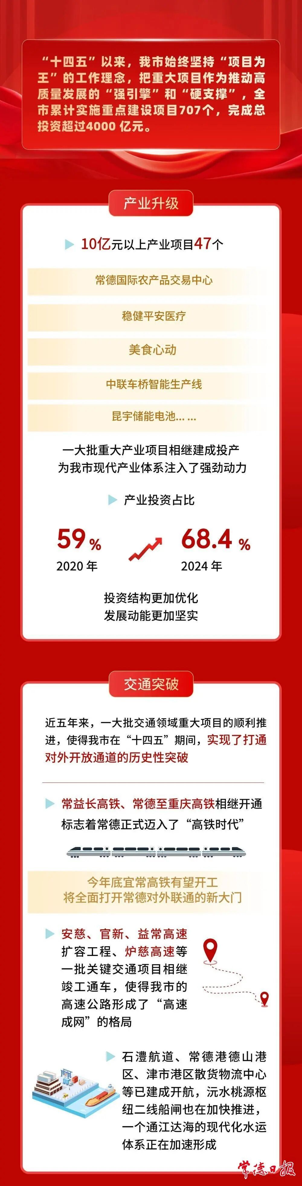 “十四五”期间,常德通过建立全链条项目管理机制和落实省市重点项目“一单三制四调度”工作机制,持续营造大抓项目的浓厚氛围,推动一系列重大项目落地生根,为常德的经济社会高质量发展积蓄了强大后劲,也为迈向“十五五”奠定了坚实的基础。