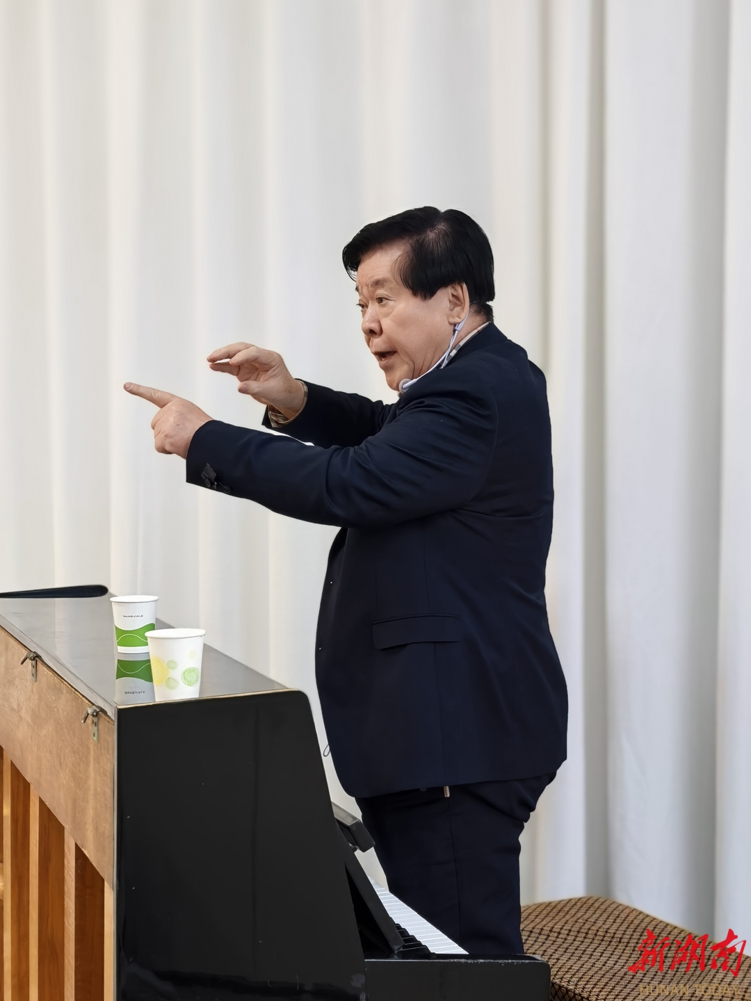 10月25日下午,湖南省妇女儿童活动中心六楼,如歌合唱团排练大厅,年已八旬的音乐作曲家殷景阳老师亲临指导,现场掌声热烈,激情飞扬。