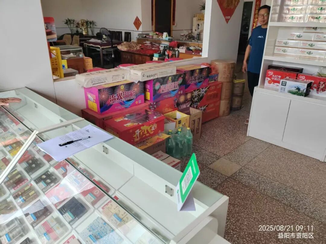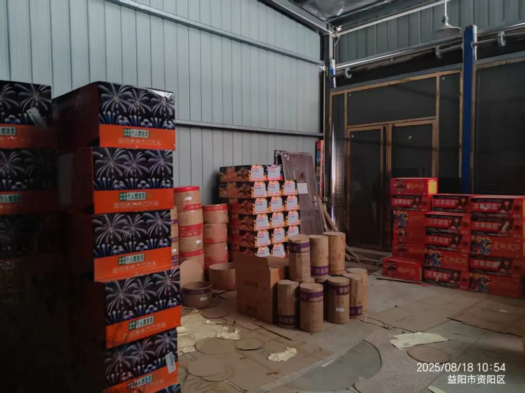 接线索举报,8月18日,资阳区新桥河镇政府、新桥河镇派出所、资阳区应急管理局、益阳市应急管理综合行政执法支队资阳大队在新桥河镇龚家坪社区金正超市发现烟花鞭炮46箱(件)。经调查,金正超市未经许可经营烟花爆竹,从2023年12月至今共售卖烟花爆竹1000元左右。