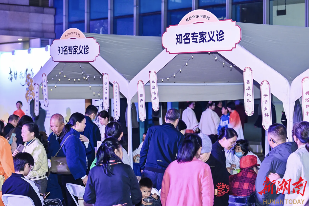 湖南日报·新湖南客户端10月26日讯(通讯员 赵慧云)10月24日晚,长沙河西王府井东广场的“中医健康夜市”人气十足!这场由湖南湘江新区卫生健康局指导,长沙市第四医院联合咸嘉湖街道带来的大型义诊暨主题党日活动,将健康服务送到市民家门口,现场的2000余人共同体验了一场别开生面的沉浸式健康文化之旅。