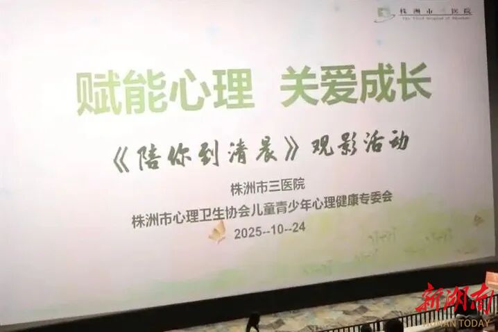 湖南日报·新湖南客户端10月27日讯(通讯员 朱爱)10月24日晚,株洲市三医院面向全市教师、心理咨询从业者及爱好者、心理健康关爱人士,成功举办了一场以“守护青少年心理”为主题的公益观影活动。活动特邀参与者共同观看了具有深刻教育意义的影片《陪你到清晨》,旨在通过影像媒介,引发社会各界对青少年心理健康问题的更广泛关注与深入思考,并为后续相关干预工作的开展凝聚共识与力量。