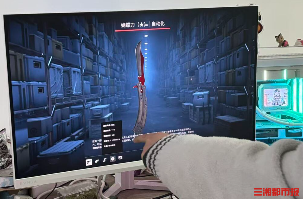据了解,这款游戏在Steam平台长期保持较高热度,10月27日下午,仍约有4600名玩家在线。据多位接受采访的玩家介绍,游戏中的皮肤主要通过两个渠道获取,第一种是通过积累游戏时长后花费金额开箱抽取;第二种则是通过二级交易市场购买道具。其中,更新前罕见的金色饰品(如刀、手套等)抽取的概率大约为0.26%,“一款道具越是稀缺,在二手交易市场的定价就越高昂。”长沙玩家洪先生说。