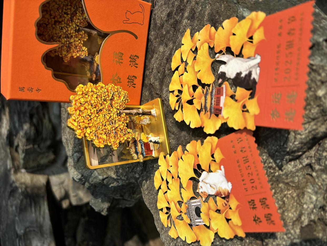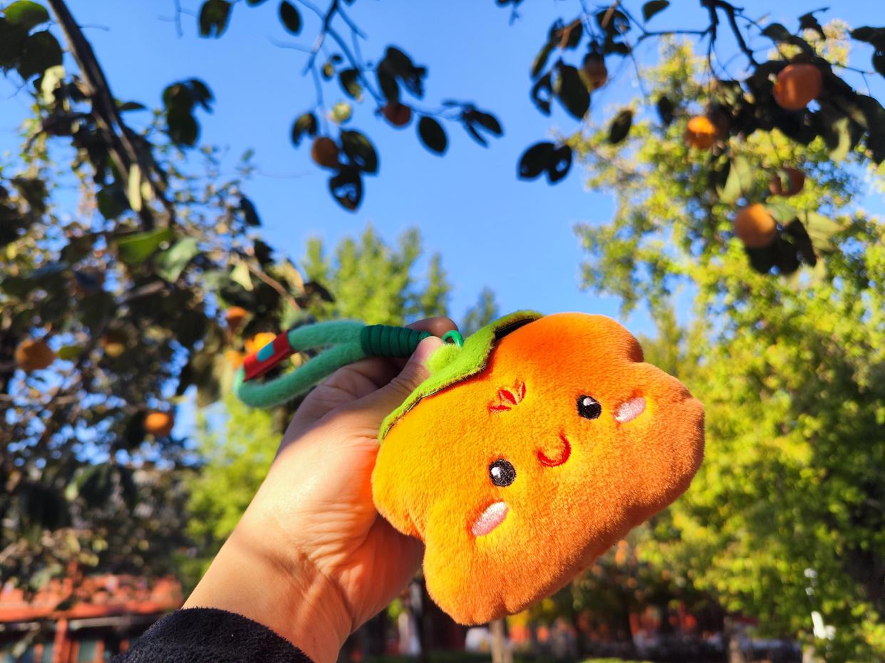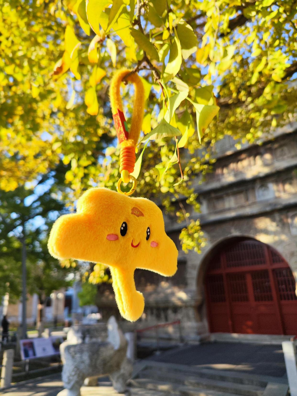 北京石刻艺术博物馆“杏运常在”“喜柿连连”毛绒挂件位于五塔寺的北京石刻艺术博物馆推出的秋季限定文创,将镜头定格在院内的古银杏树和柿子树上。该馆副馆长黄一说,经过反复商量,团队最终觉得要把博物馆的秋景转化为一份治愈陪伴,为观众送上温暖的秋日祝福。几易其稿后,两款毛绒玩偶出炉,分别是银杏叶造型的“杏运常在”、柿子造型的“喜柿连连”。