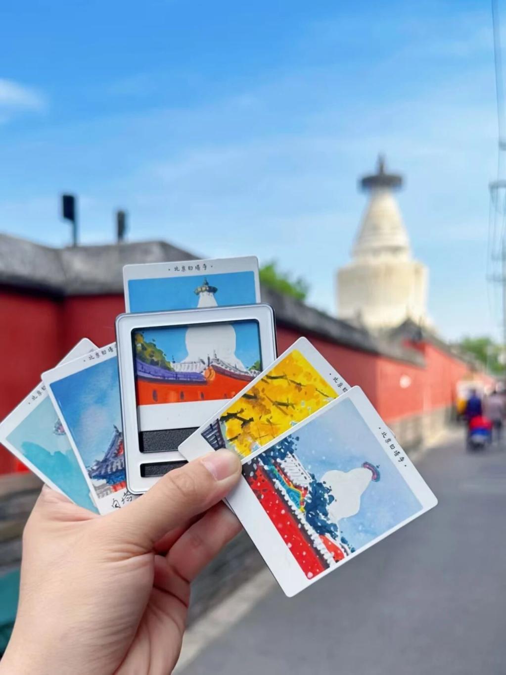 700余岁的妙应寺白塔也有秋季限定,推出了四时白塔流沙浮雕冰箱贴。“分春、夏、秋、冬4款,每款都巧妙融合金属浮雕技术与流沙效果,展现白塔随季节变化的经典景致。”工作人员说,秋季还上新了一套迷你画展冰箱贴,以原创手绘插画的形式描绘白塔与胡同的烟火气。