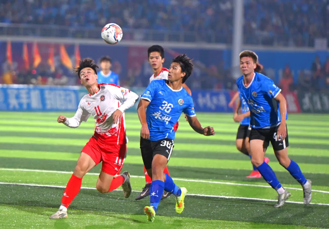 10月14日,第十五届全国运动会足球项目男子18岁以下组A组第二场比赛中,辽宁队球员和湖南队球员在比赛中拼抢。图源 新华社正如湖南省足球协会主席罗器宇所言:“湘超的重要意义,远超赢得几场比赛,而是在于培养一代人、建立一个体系、塑造一种文化。”