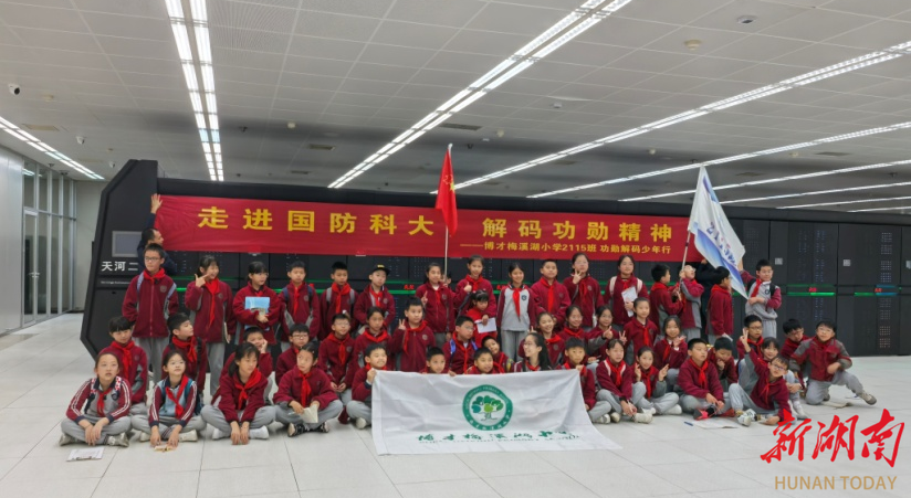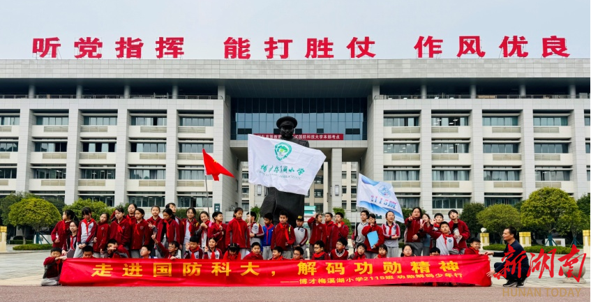 新湖南客户端10月27日(通讯员 张强)10月25日,博才梅溪湖小学的同学们走进国防科技大学,开展“解码功勋,强国有我”主题研学活动。同学们近距离接触北斗导航系统、天河超级计算机等“大国重器”,在动手实践中感受科技魅力,激发爱国热情与科学兴趣。