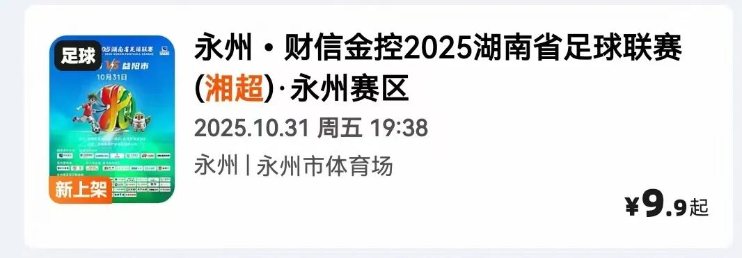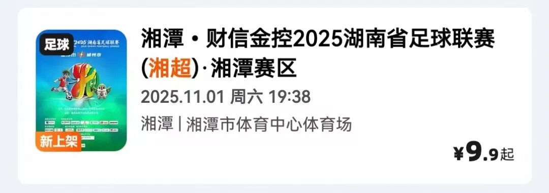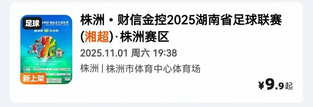 抢票了!本周湘超有两场比赛今天开票!本周六,湘超积分榜目前的“榜一”长沙队和“榜二”株洲队将会战于株洲市体育中心,想去现场观赛的球迷朋友请注意,株洲VS长沙这一场比赛的门票将在今天12:08开售!本周六湘潭VS郴州的比赛今天10:18开票!
