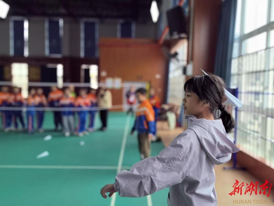 长跑、短跑、接力跑,跳高、跳远、掷铅球,以及个人短绳、集体长绳等项目轮番进行,学生们挥洒汗水,尽显少年活力与力量。篮球场和风雨操场上,四至六年级纸飞机大赛吸引目光,“直线距离赛”“留空计时赛”中,纸飞机承载着学生对蓝天的向往与科学探索精神。