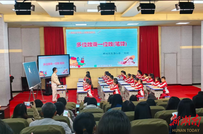 当日下午,培训首阶段活动在郴州市东湾小学开展。东湾小学学生带来体艺特色节目展演,让参训教师直观感受特色教育魅力。随后,该校何艳老师呈现数学课例,课堂巧妙融入信息化教学手段将抽象知识具象化,并通过说课分享教学设计思路、工具应用策略及反思,为参训教师提供实践范例。当日培训压轴环节,该校党支部书记欧小华围绕教师职业素养、教育初心何使命,结合典型案例解读“新时代师德师风”内涵,参训教师表示将以更高标准坚守教育初心、涵养高尚师德。