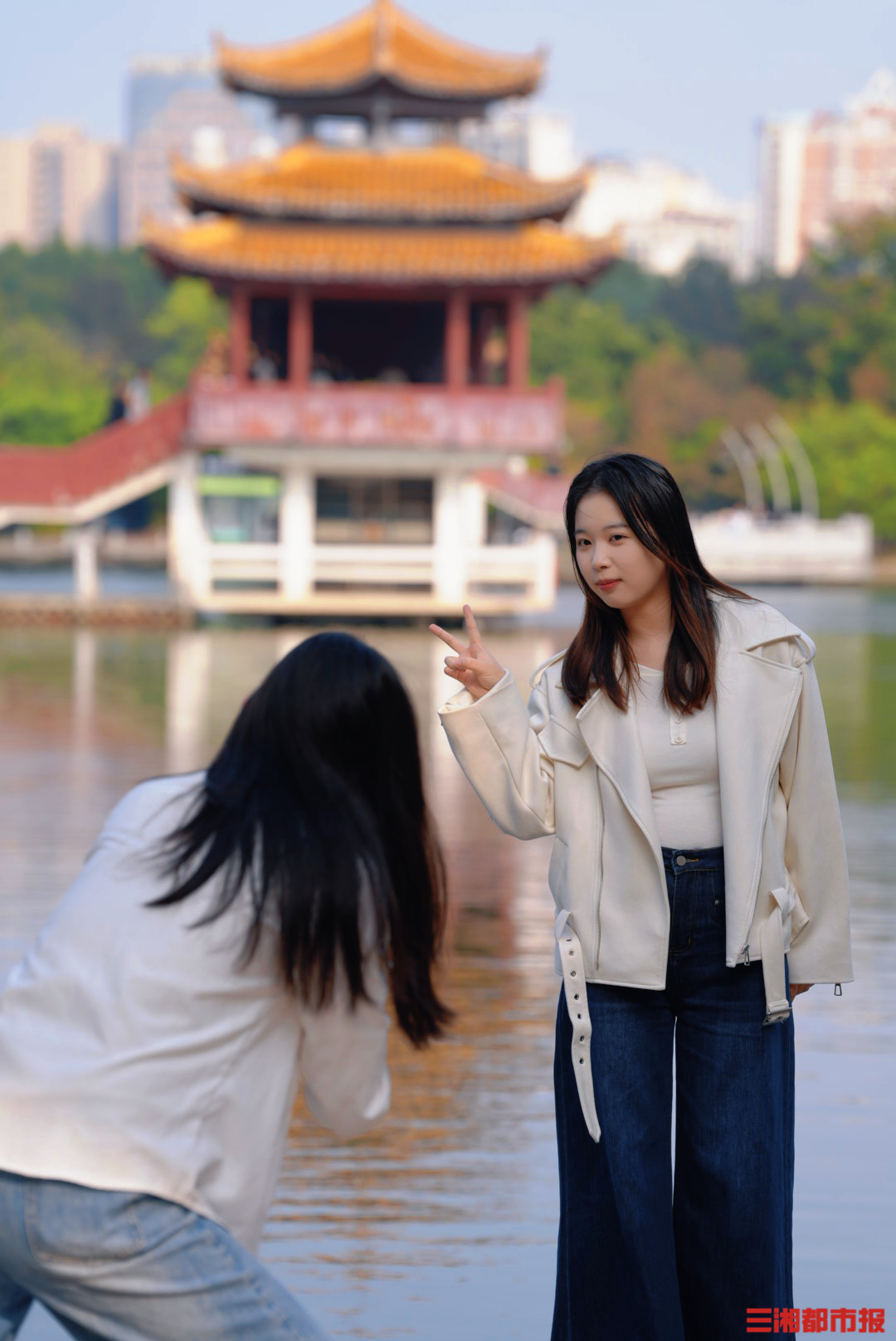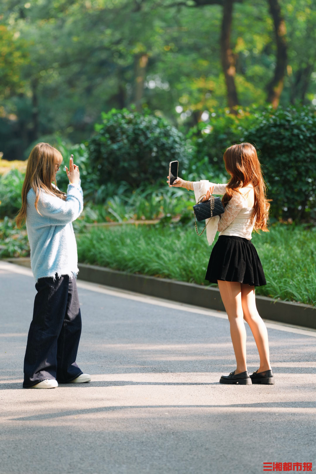 出太阳了,20°C的阳光让长沙找回了秋的感觉。湖南烈士公园年嘉湖畔全是散步、拍照的游人,这一刻,镜头定格的不只是风景,更是秋日里人与自然的对话。(顾荣 摄)