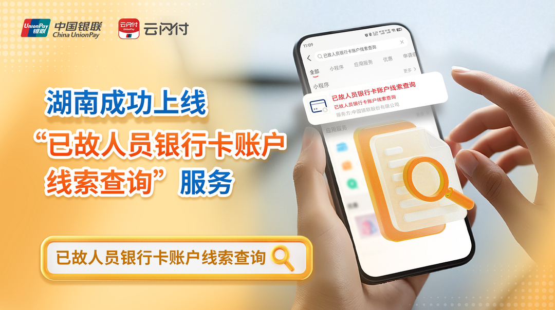 为解决群众在办理已故亲属遗产继承过程中“银行卡账户线索查询难”的痛点,湖南于10月正式上线“已故人员银行卡账户线索查询”服务,通过“线下线上两步走”,全程只需跑一次银行,就能获取已故亲属在湖南省辖内所有商业银行的银行卡账户线索。