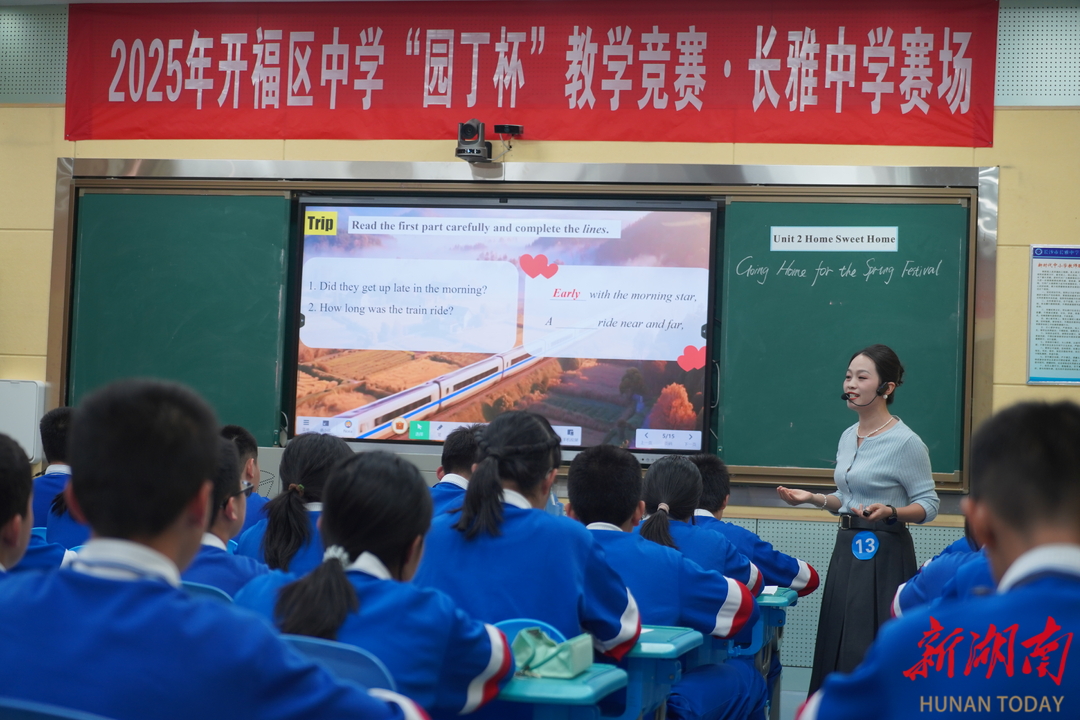 湖南日报10月28日讯(通讯员 卢恋 全媒体记者 杨斯涵)“What is your favourite subject? Why do you like it?” 10月28日,在长沙市长雅中学的录播教室里,3名学生正自信地用英语分享着对数学、英语等学科的热爱。这是英语课堂上的口语练习,也是2025年长沙市开福区“园丁杯”初中英语教学竞赛现场的生动一幕。