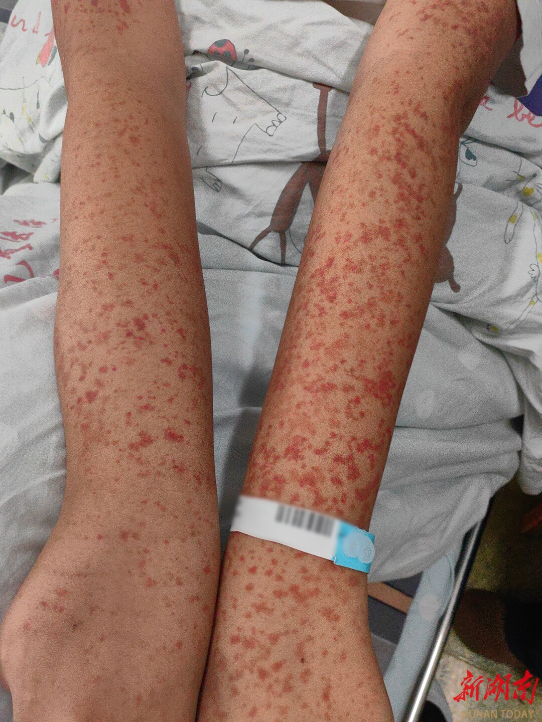 与嘉嘉同一天住进肾脏风湿免疫科的琪琪,一周前出现紫红色皮疹,主要分布在双下肢、臀部和躯干,伴有轻微痒感和双下肢关节疼痛肿胀。被先后当作丘疹性皮炎、扭伤治疗,均未见明显好转,“后来疹子越长越多,手脚都胀痛得走不了路,看了好几个科室后医生最后考虑是过敏性紫癜。”琪琪父母这才带琪琪来到湖南省儿童医院肾脏风湿免疫科治疗,目前琪琪的腹痛已缓解,皮疹也在逐渐消退。