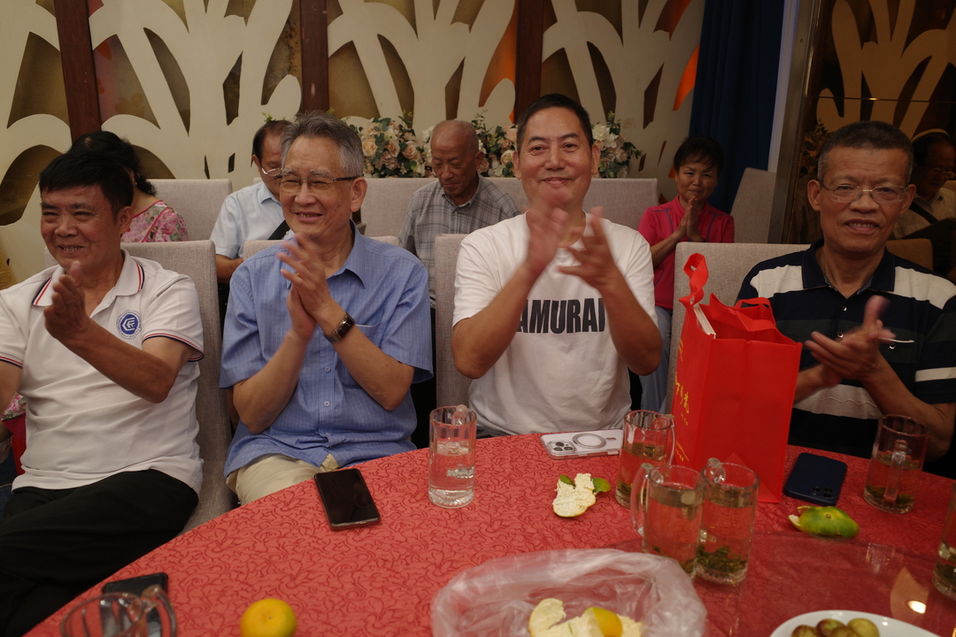 孙从健同学的致辞,引起大家鼓掌(左起:龚忠明、滕章贵、罗归国、黄海泉)