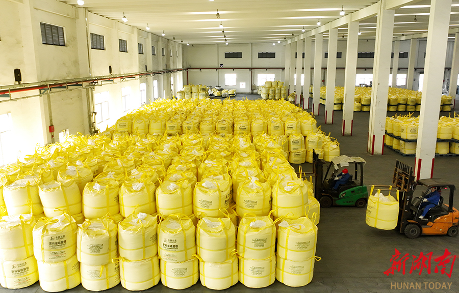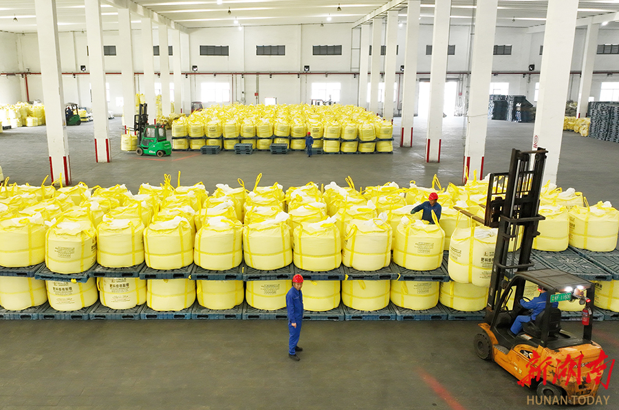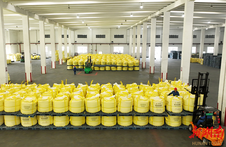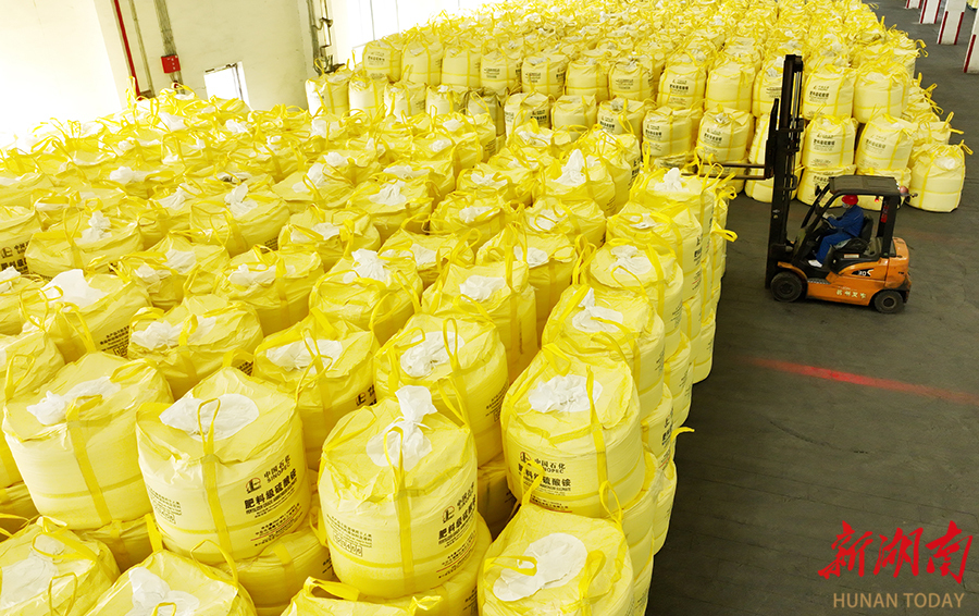 10月27日,湖南石化己内酰胺部硫酸铵成品库房,员工有序将肥料级硫酸铵成品入库。截至10月,湖南石化今年年产60万吨己内酰胺装置副产肥料级硫酸铵晶体近51万吨,其中大颗粒硫酸铵近21万吨。该公司联合中石化化工销售华中分公司和化销国贸积极开拓国际市场,出口大颗粒硫酸铵和晶体硫酸铵近27万吨。大颗粒硫酸铵还首次出口至罗马尼亚,成功打通欧洲市场销售渠道。彭展 李翼骏 摄影报道(湖南图片库)