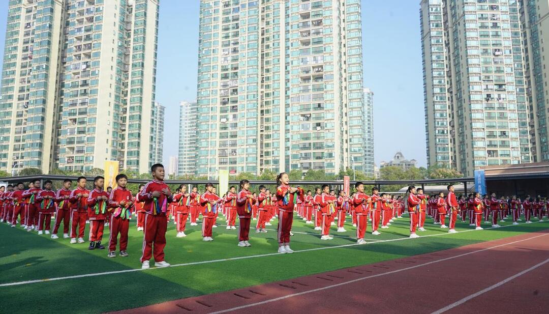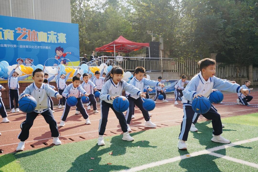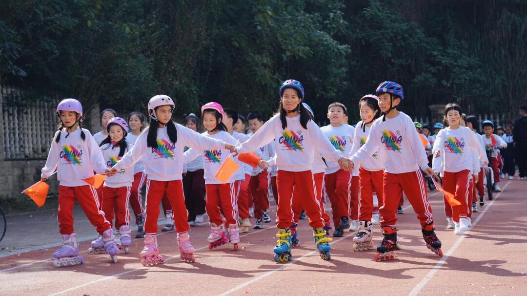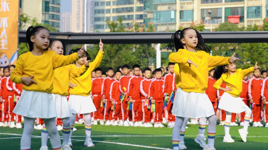 看,“奋进·担当”的号角由一至三年级的小将们吹响!他们挥舞彩绳、手持篮球,用稚嫩却坚定的动作,将“更快、更高、更强”的体育精神生动演绎,赢得阵阵喝彩。