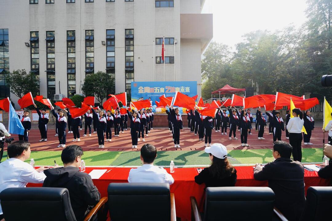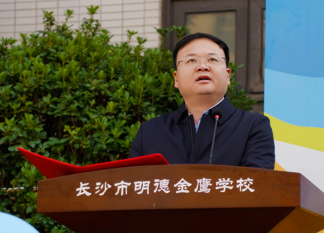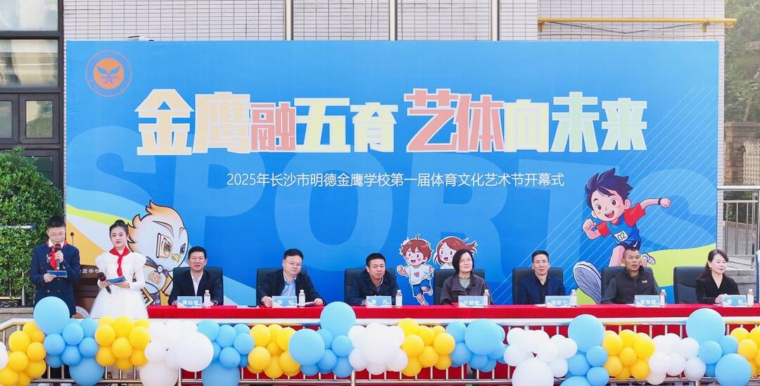 新湖南客户端10月29日讯(通讯员 苏爽 摄影 刘广粮 视频 熊胜纯)晨光洒满绿茵,活力涌动校园。10月28日上午,长沙市明德金鹰学校的运动场彩旗飘扬,“金鹰融五育,艺体向未来”首届体育文化艺术节拉开帷幕。本次活动特邀长沙市明德中学党委副书记、校长许韶歆,开福区教育局党组委员、副局长陆跃宁,洪山街道党工委委员、纪工委书记黄兵,洪雅社区党委书记黄海梁等嘉宾与学校师生、家长代表共同见证这场校园盛事。