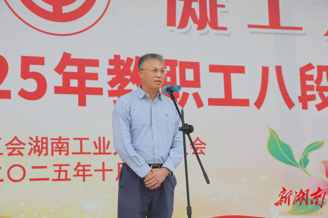 开幕式现场参赛教职工精神抖擞、队列整齐。湖南工业大学校长蒋昌波宣布比赛开幕,副校长李若梅致开幕词。李若梅在致辞中指出,八段锦作为中华优秀传统养生文化的瑰宝,兼具健身性与文化性,举办本次比赛既是学校关爱教职工身心健康、搭建文体交流平台的重要举措,也是凝聚全校力量、激发干事创业热情的生动实践。她希望全体参赛教职工以赛促练、以赛会友,在舒展流畅的动作中感受传统文化魅力,在团结协作的比拼中增强集体荣誉感,将赛场上的拼搏精神转化为推动学校高质量发展的强大动力。
