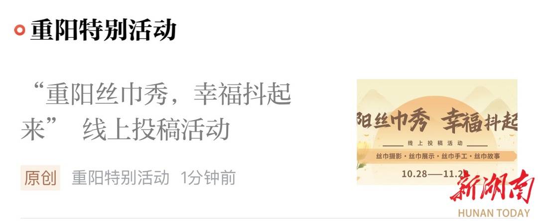 步骤三:进入“老年课堂”专题,点击“重阳丝巾秀,幸福抖起来” 线上投稿活动,上传作品。