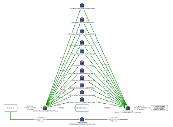 2、分散和归集技术。太子集团使用了专业的链上洗钱技巧,如“喷洒”(spraying)和“漏斗”(funneling)交易模式。他们将大笔加密货币拆分成成百上千笔转入不同地址,再重新归集到少数新地址,以此混淆资金流向。在区块链公开账本上制造出繁杂的交易网络,增加执法追踪难度。