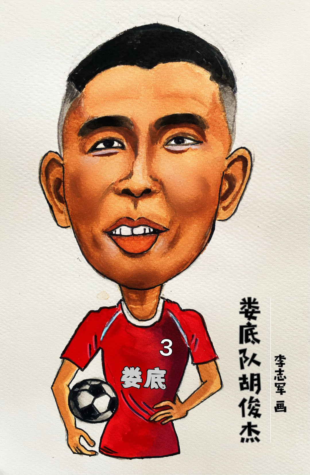 娄底队员胡俊杰漫画像。作者|李志军