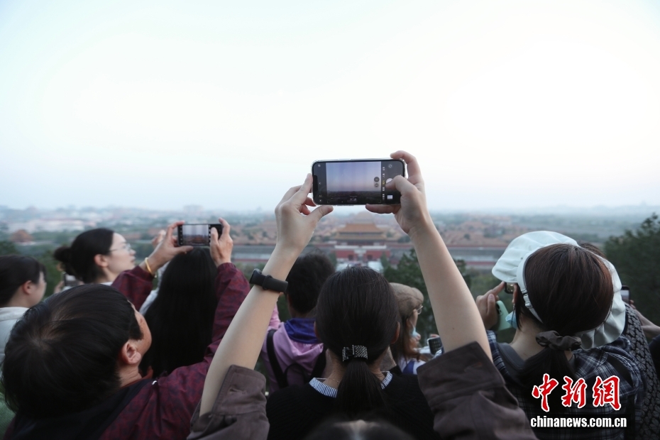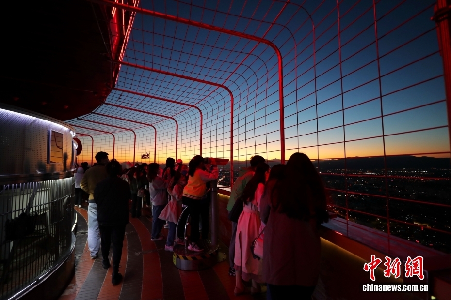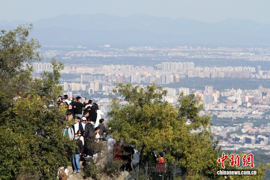 北京中央电视塔游客络绎不绝,登高望远,欣赏京城美景,度过难忘的重阳节。