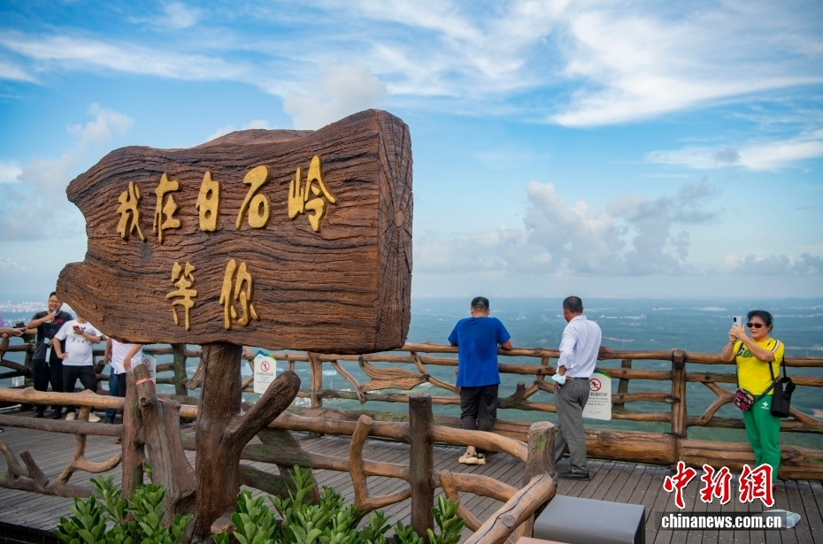 海南琼海众多市民和游人纷纷来到白石岭景区登高远望,欢度重阳节。