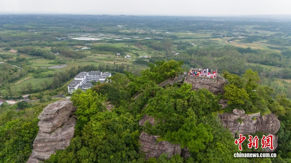 海南省定安县,人们在重阳节时来到文笔峰山顶观光游览。