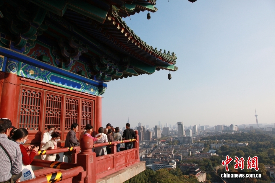 重阳佳节,人们登上南京狮子山,在阅江楼景区游玩。