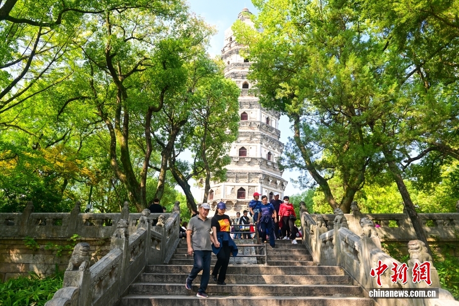 重阳节,游客前来苏州虎丘名胜风景区登虎丘山,畅游古迹乐享时光。