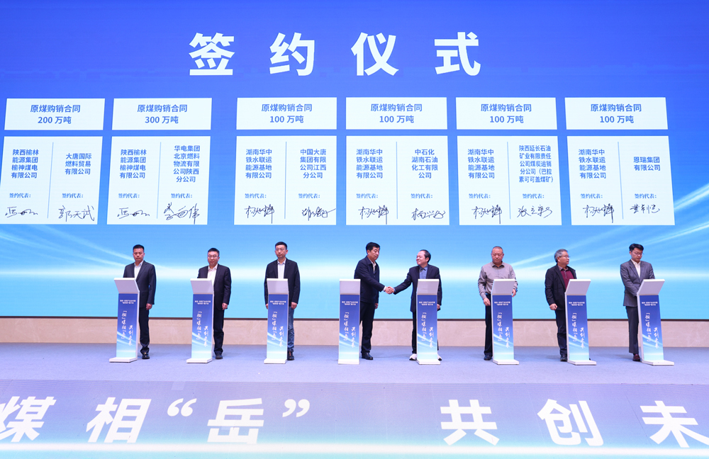 湖南日报·新湖南客户端(记者 刘神尊 王帅 周佳欢)10月29日,在“榆”煤相“岳”共创未来——陕西·榆林、湖南·岳阳产业合作暨“榆林煤”推介会上,华容县人民政府与陕西榆林能源集团正式签署煤炭铁水联运储配基地二期项目协议,总投资额约26亿元。项目拟新建4个5000吨级多功能泊位等,全部建成后基地煤炭周转量近期达3200万吨 / 年、远期5000万吨 / 年,进一步巩固华容作为“北煤南运”湖南通道的核心枢纽地位。与此同时,华容与深圳微言科技有限责任公司签约新能源航运生态产业园项目,为区域能源运输体系注入绿色动能。
